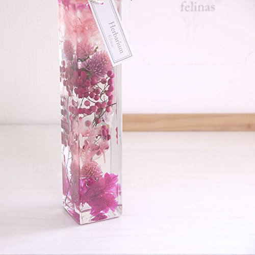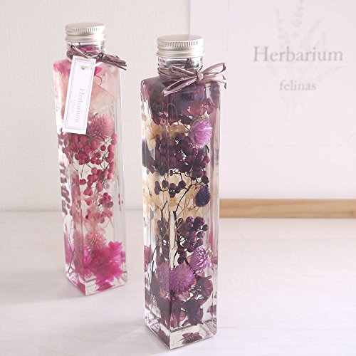 ハーバリウムとは、「植物標本」の意味です。専用オイルに浸すことで、みずみずしい状態でお花や植物をおしゃれなインテリアとしてお楽しみいただけます。 (1年程度)色や形がゆっくりと変化していく過程をお楽しみください。サイズ:4cm×4cm×21.5cm 天然素材を使用していますので、写真の画像の作品とは素材の大きさや長さが若干異なります。 ■内溶液は、耐火温度を高め(290°C)に設定した燃えにくいオイルですが、火気の近くや直射日光は避けてご使用ください。・オイルが目に入った場合は、水でよく洗い流してください。 ■飲料ではございません。絶対に飲まないでください。 ■お子様やペットの手の届かない所に置いてください。 ■オイルは流し(下水道)に流さないでください。廃棄する場合は、食用油の廃棄と同様に新聞紙や古布に染み込ませて可燃ごみとして廃棄してください。 ■本来の用途以外には使用しないでください。 ■容器はガラス製です。強い力を加えたり、落下させると破損することがございます。お取扱いには十分ご注意ください。