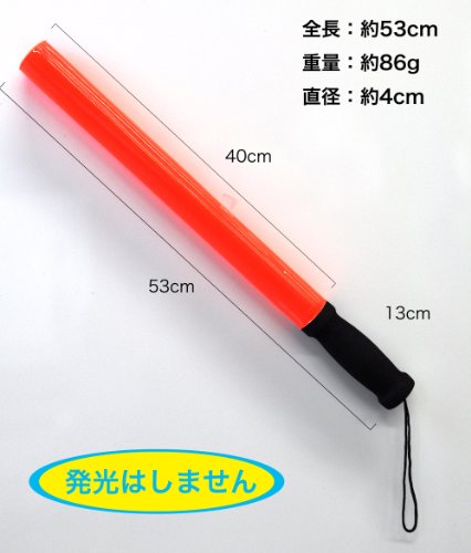 ●軽量で疲れにくい●工事現場、駐車場の警備誘導に●86gでお手軽、軽々●素材:グリップ:エチレン一酢酸ビニル共重合樹脂 オレンジ部分:塩化ビニール、ポリエチレン
