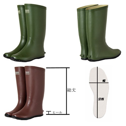 軽くて柔らかいゴムを使用し、しゃがみ作業や長時間 の作業も違和感なくできます。 しゃがんだ時に膝裏に当たらないよう、履き口が斜めに なっています。 筒周りが細く、フィットする設計になっておりますので ゆとりをもってお履きになりたい場合は1サイズ大きめ がよいです。 ◆商品仕様◆ 裏布:吸汗・抗菌性ナイロンニット 内寸:23.0-26.0cm:300mm 総丈:23.0-26.0cm:310mm 重量:約540g(片足) カラー:ブラウン