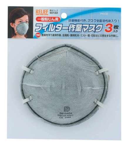 リリーフ(RELIFE) フィルター作業マスク 3枚入 マスク全面活性炭入 55122
