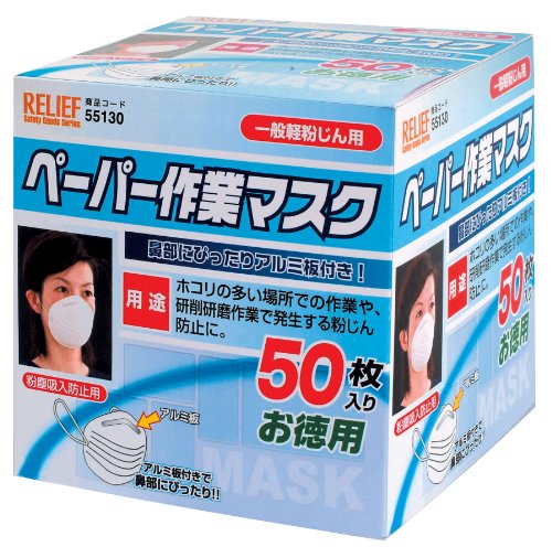 リリーフ(RELIFE) ペーパー作業マスク 50枚入 化粧箱入 55130