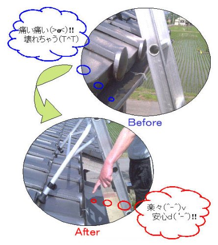 - どのメーカーのハシゴにも取り付けられる!「雨どい用リリーフ」は雨どいを痛めずに作業ができます!