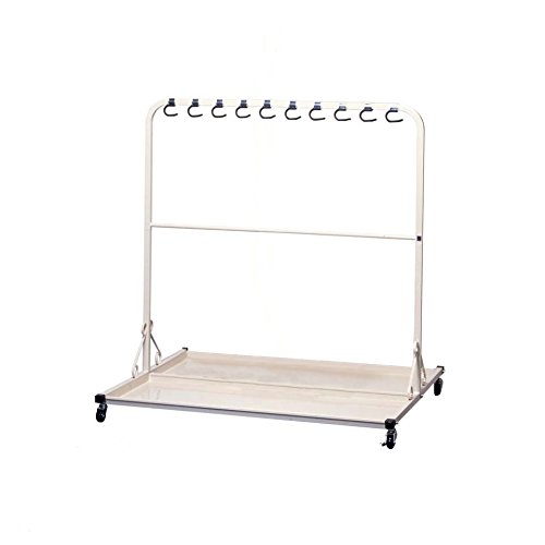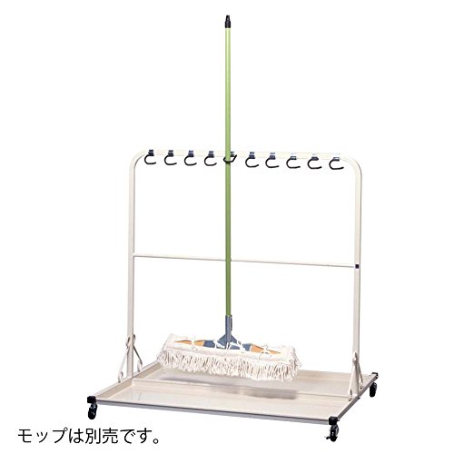 ミヅシマ工業 モップ掛台 070-0100 ●柄にフックや引っ掛けひもがなくても柄自身の重さによって固定が可能なモップ掛台です。 ●受皿付きですのでモップ保管時に床にゴミが落ちません。 ■学校、病院、公共施設、レジャー施設、複合施設等 ●清掃用品:モップ ●キャスター付 ●お客様組立製品サイズ:間口1150mm×奥行1010mm×高さ1200mm 重量:約18.4KG 材質:●スチール(メラミン焼付塗装)