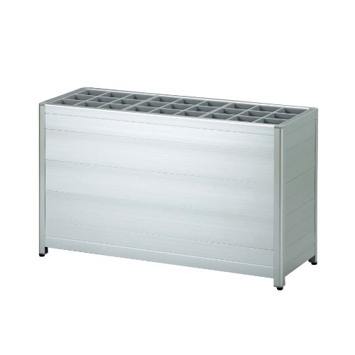 フレームにアルミを使用した落ち着いたデザインの傘立てです。背面形状受け皿取り外し可能 フレームにアルミを使用した落ち着いた デザインの傘立てです。アジャスター付き 。