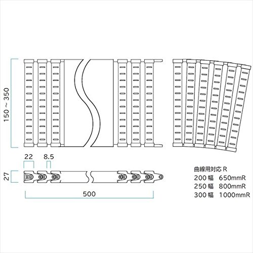 ●ジョイント位置の変更で直線、曲線にも対応可能で重荷重対応にも考慮したステンレス製の溝蓋です。本体は1.5mm厚のステンレスを使用していますので車路にも対応可能です。