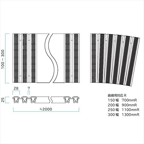 ミヅシマ工業 樹脂製グレーチング フリーハードルMG ♯251~300 251~300mm×2m×25mm 433-0040 ※受け枠別途 オフホワイト 曲線用