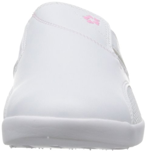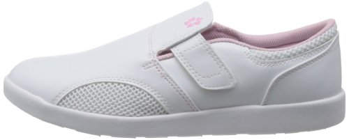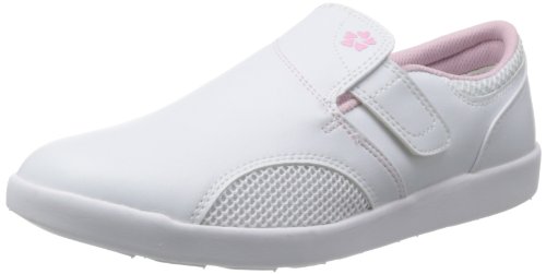 キュートなワンポイントと軽量&通気で快適さUPのナースシューズ。超軽量スリッポンタイプ。サイドがマジックテープなので足に合わせた微調整ができ、脱ぎ履きもラクラクです。 【超軽量】片足125g(23.5cm)の超軽量で、長時間履いていても疲れにくい軽さです。【通気の良いインソール】足の裏のムレ感を解消し、サラサラな足裏感覚が持続します。クッション性に優れているEVAソール、滑りにくいハイグリップソールを採用。 [先芯]無し [甲被]人工皮革/メッシュ [中敷]EVAインソール(抗菌・防臭) [靴底]圧縮EVAスポンジ [標準重量 23.5cm]250g/足 [靴幅]EEE 【注意点】つま先保護性能(先芯装備)はありません。 静電気帯電防止性能はありません。 屋外でのご使用には、適さない場合(靴底の消耗を早める等)があります。