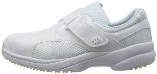 フットワーク抜群!軽量でソフトなスポーツシューズ感覚のナースシューズです。 【気になる臭いを抑える】悪臭の原因のバクテリアを抑える「抗菌防臭効果」や臭気を中和消臭する「消臭効果」のあるオーダレス加工インソールを採用し靴内を清潔にキープします。【ソフト人工皮革/メッシュ】危険度が高いつま先は人工皮革で多い、サイドは通気性を考慮してメッシュ材を使用しました。【滑りにくいハイグリップソール】特殊配合の合成ゴムと滑りにくい意匠で滑りにくくなっています。【血液・薬品・落下物から足を守る】つま先にメッシュ素材を使用していないので、落下物や薬品、血液の付着からつま先を守る安心設計。【軽量&クッション性に優れたインソール&ソフト素材ソール】長時間の勤務でも疲労を軽減できます。 [先芯]無し [甲被]人工皮革/メッシュ [中敷]EVAカップインソール(抗菌・防臭) [靴底]EVA/合成ゴム [標準重量 23.5cm]400g/足 [靴幅]EEE 【注意点】つま先保護性能(先芯装備)はありません。 静電気帯電防止性能はありません。 ※商品のデザイン、仕様、価格等は予告なく変更となる場合がございます。