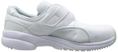 フットワーク抜群!軽量でソフトなスポーツシューズ感覚のナースシューズです。 【気になる臭いを抑える】悪臭の原因のバクテリアを抑える「抗菌防臭効果」や臭気を中和消臭する「消臭効果」のあるオーダレス加工インソールを採用し靴内を清潔にキープします。【ソフト人工皮革/メッシュ】危険度が高いつま先は人工皮革で多い、サイドは通気性を考慮してメッシュ材を使用しました。【滑りにくいハイグリップソール】特殊配合の合成ゴムと滑りにくい意匠で滑りにくくなっています。【血液・薬品・落下物から足を守る】つま先にメッシュ素材を使用していないので、落下物や薬品、血液の付着からつま先を守る安心設計。【軽量&クッション性に優れたインソール&ソフト素材ソール】長時間の勤務でも疲労を軽減できます。 [先芯]無し [甲被]人工皮革/メッシュ [中敷]EVAカップインソール(抗菌・防臭) [靴底]EVA/合成ゴム [標準重量 23.5cm]400g/足 [靴幅]EEE 【注意点】つま先保護性能(先芯装備)はありません。 静電気帯電防止性能はありません。 ※商品のデザイン、仕様、価格等は予告なく変更となる場合がございます。