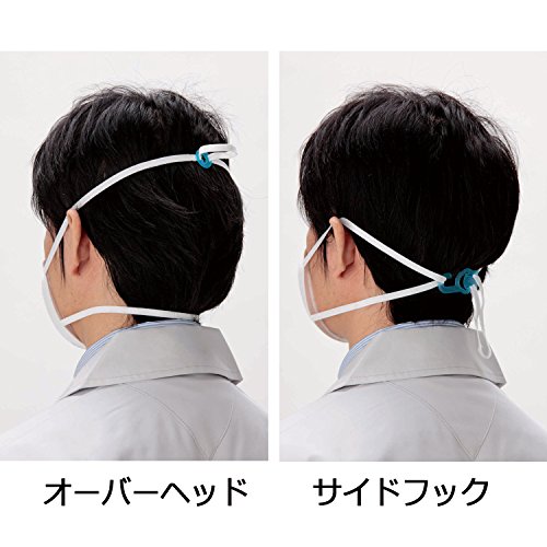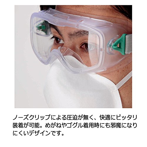 - [特長]1)ノーズクリップによる圧迫がなく、快適にピッタリ装着が可能。メガネやゴグル着用時にも邪魔になりにくいデザインです。 2)顔面に合わせた立体形状のため、接顔部の密着性が向上します。内側の空間は余裕があるので、呼吸も楽で快適な会話が可能です。 3)接顔部分に厚みを持たせた肌触りが良く、クッション性の高い素材を採用。顔にやさしく密着し、塵などの侵入を防ぎます。 4)しめひもはオーバーヘッドタイプとサイドフックタイプの2種類をご用意。 5)金属を使用していないので、廃棄が容易です。