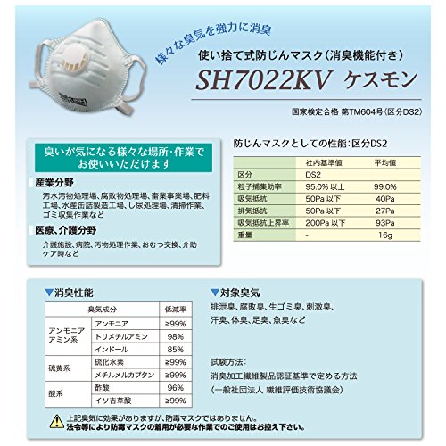 - 【注意点】ケスモン?は東亞合成株式会社の登録商標です。 マスクに表示されている使用限度時間とは、粉じん等の捕集に対しての時間であり、消臭性能を示すものありません。