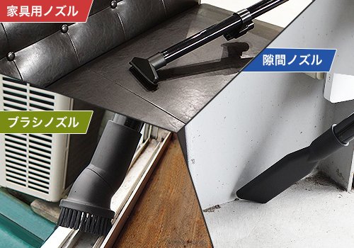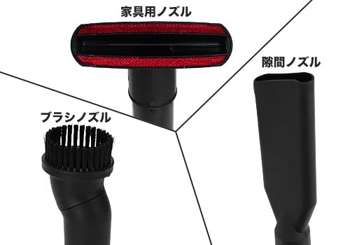 ソファなどの家具便利な家具用ノズル、埃をかき集めて吸い取るブラシノズル、済や狭い隙間に便利な隙間ノズルのセットです。 交換もしくは、消耗したときの予備としてご購入いただけます。