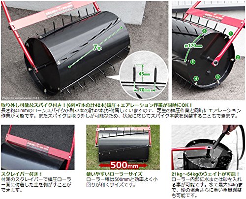ミナトワークス 芝生用 鎮圧ローラー (スパイク42本+スクレイパー付き/巾500mm) MGR-500DX