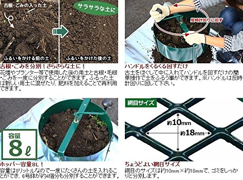 園芸用土の再利用する際に根の除去や、腐葉土や堆肥などの混合にお使いいただけます。 本体に古土を入れてハンドルを回すだけの簡単操作で土をふるう事ができます。