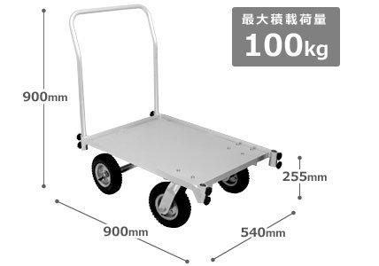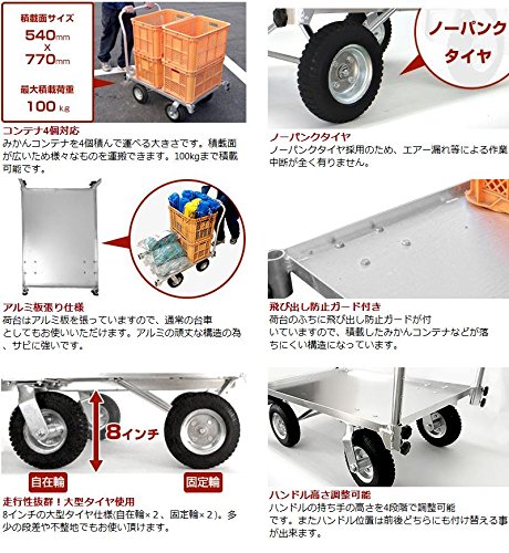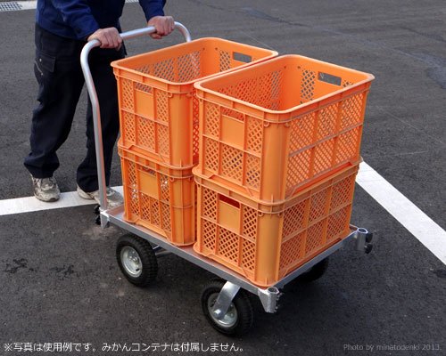 ミナト アルミ台車 MAC-100N (ノーパンクタイヤ/アルミ板張り仕様/コンテナ4個用/荷重100kg)