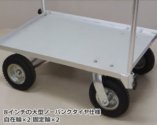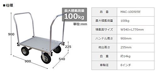 ミナト アルミ台車 MAC-100NWH 《両側ハンドル仕様》 (ノーパンクタイヤ/アルミ板張り/コンテナ4個用/荷重100kg)