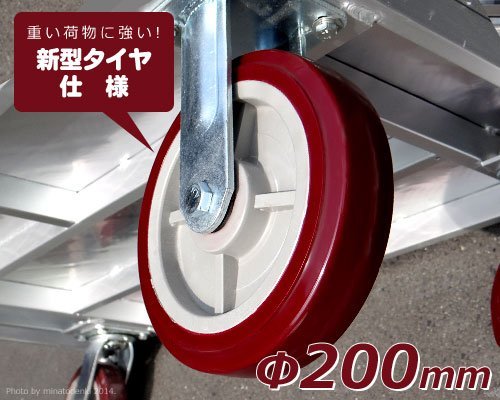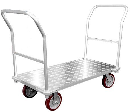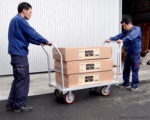 美しいアルミ製ボデイーの大型運搬台車です。スチール台車に比べ軽量でサビにくく水に強いため、衛生的にご使用頂けます。ワイド型の荷台で長物も運搬できます。また大型ソリッドタイヤ仕様のため多少の段差も乗り越えて運搬できます。