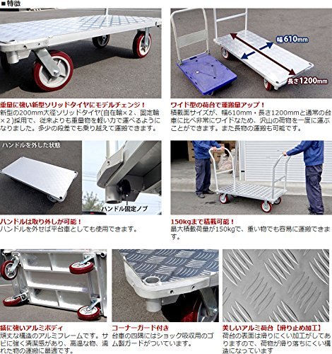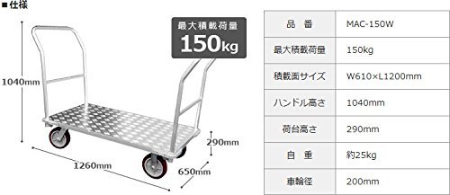 ミナト 大型アルミ台車 MAC-150W 《両ハンドル仕様》 (荷重300kg)