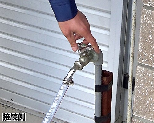 高圧洗浄機に接続する事により、水道から直接吸水が可能になります。溜め水の量を気にせず作業が行えます。