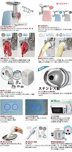 ご家庭で簡単に牛肉・豚肉・鶏肉・魚肉のミンチや、味噌擂り(煮た大豆のミンチ)ができるミートミンサーです。置き場所に困らないコンパクト設計となっています。標準付属のカットプレートは細挽き(4mm目)・粗挽き(8mm目)の2種類で、作業に合わせてお使いいただけます。