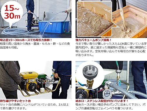 ミナトワークス バキュームポンプセット 《10m遠隔スイッチ+電磁クラッチ+吸込管15m付き》 (1インチ/4馬力セル付エンジン)
