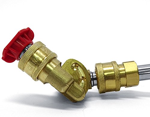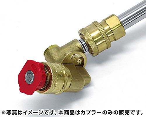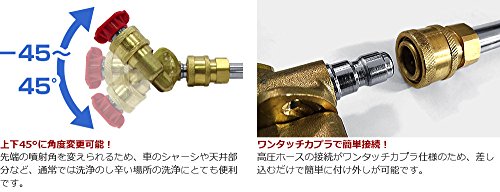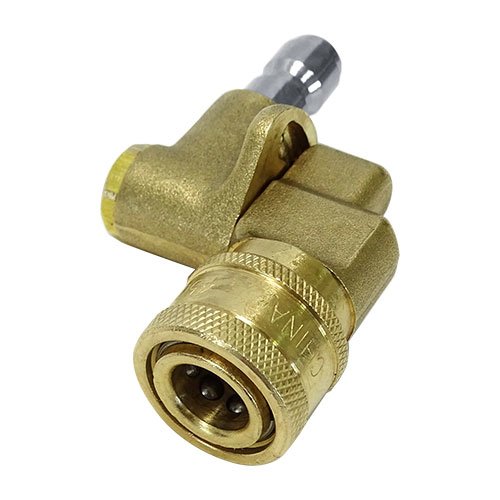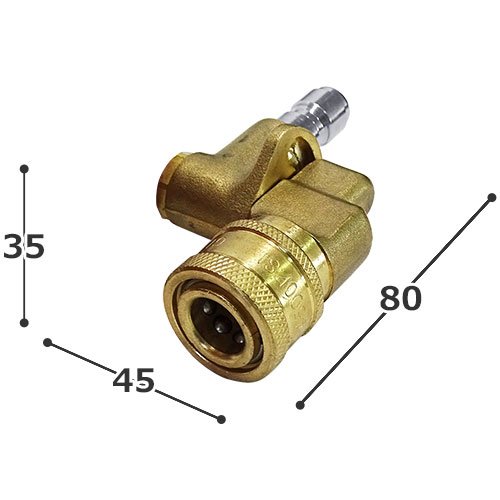 ミナト 高圧洗浄機用の首振り型カプラーです。ガンノズルの先端に装着することで、噴射角度を変えられます。車のシャーシ部分や、天井などの難しい箇所の洗浄にとても便利です。
