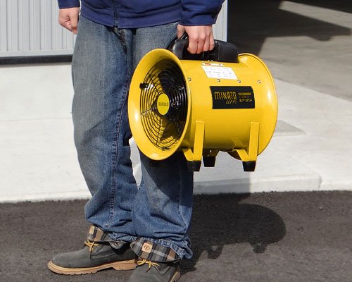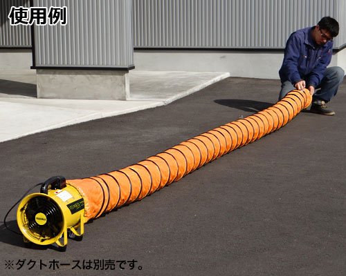 口径250mmのダクトファンです。 本体はフレアー仕様のためダクトホースが外れにくい構造となっています。 ホースは本体の両端どちらにも付けることができますので、排風⇔送風の切り替えが簡単にできます。 またエアーダクト(別売)をつなぎ合わせることで、ホースを延長することが可能です。