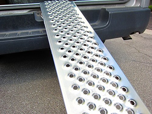 <特徴> 軽量なアルミ製モーターサイクル&ATV、除雪機向けスロープです。 常時車内携帯に便利な1500mmサイズでありながら、ワイドな幅215mmのため扱いやすさは抜群です! スロープ面にリブ加工を施し、軽量化と強度アップを実現、オフロードバイクや作業用車(ATV、除雪機)の運搬に最適です。 対候性に優れたアルミ素材のためオフロードバイクユーザーにもお薦めです。 ハイエース、その他ワンボックス車等の使用に最適な寸法です! <仕様> サイズL:1500×W:215×t:35mm 重量:約6.2kg 耐重量:200kg迄(2本でご使用の際は400kg迄) *スロープ左右にスロープガイドがないフラット仕様です。