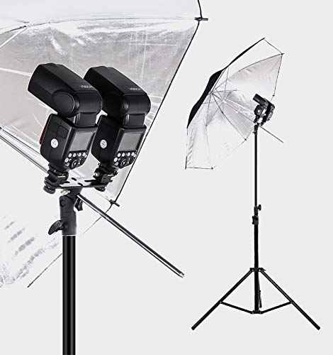 - フラッシュブラケットを使用していろいろなライティング機材をセットするのにとても便利です。アンブレラ、ストロボ、スピードライトなど幅広く取り付けることができます。アンブレラはしっかり固定可能です。