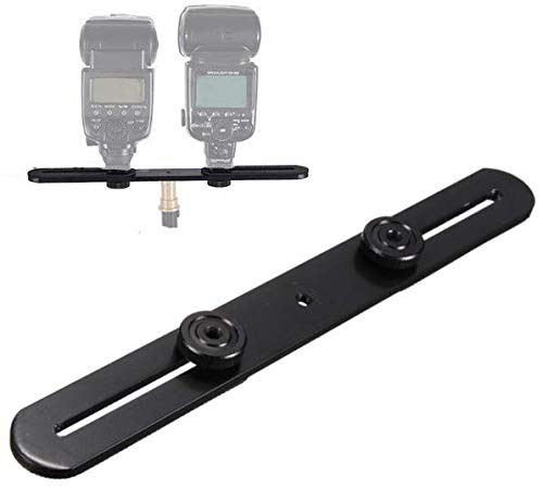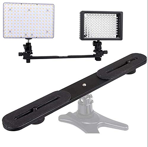 - ロングタイプのフラッシュブラケットで、かなり長いので余裕があります。両側の取り付けネジで左右の移動、首ふり可能です。LEDライトの向きを変えるのに便利です。中央にマイク、左右にLEDライトなど様々な使用方法があります。