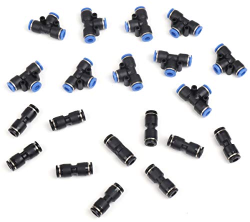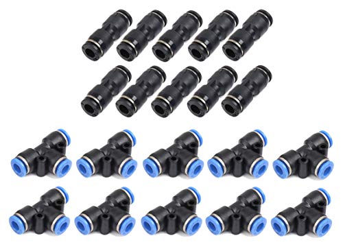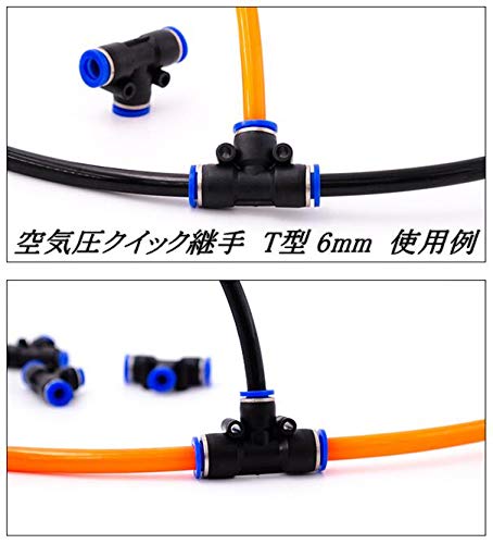 空気圧 クイック継手 ワンタッチ 継手 ストレート 6mm 10個 & T型 6mm 10個 配管用 PU6 PE6