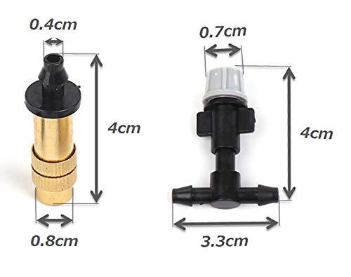 - サイズ:銅タイプ霧吹きノズル/長さ4cm、幅0.8cm、接続口外径0.4cm(内径4mm、外径7mmのホースに適合)、散水直径0.5-0.8m左右 霧吹きノズル/底面長さ33mm、高さ40mm、、接続口外径 cm(内径4mm、外径7mmのホースに適合)、散水直径0.7m 水量/銅タイプ霧吹きノズル/毎時8L 霧吹きノズル/毎時8‐10L