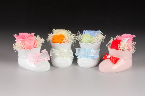 ●出産のお祝いや誕生日の贈り物にぴったりな、愛らしいベビーシューズのアレンジ
