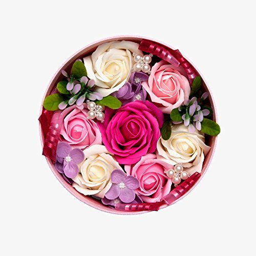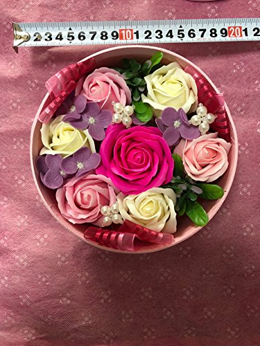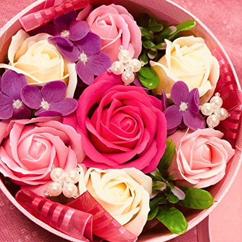 ボックスいっぱいに詰め込んだ洗練された色合いのソープフラワーです。とてもオシャレな両手のひらいっぱいのとっても可愛い石鹸素材で出来ているお花です。枯れることもなくお水もあげる必要がないのでお部屋のインテリアはもちろん贈り物として貰うととても嬉しいので母の日や結婚記念日など何か気持ちを伝えたい時に是非プレゼントしてあげてほしいです。国内生産なので質もよく安心して頂ける商品になってます サイズは蓋をかぶせた状態で直径16cm高さ8.5cmです 注意事項 ■ソープフラワーを使用しておりますので、お水は上げないでください。 ■貴金属、宝石類がお花に触れないようご注意ください。変色する場合があります。 ★紙製のボックスは太陽光や照明器具の紫外線との化学変化により、褪色します。 長時間フタを閉めたままの場合は、光の当たらない部分のみ元の色が残り、 線が入ったようになります。あらかじめご了承ください。