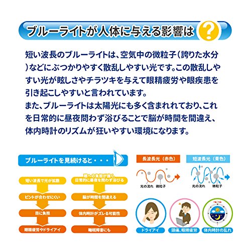 - 【フィルター特性】 可視光線透過率 : 約78%、ブルーライトカット率 : 約43%、UVカット率 : 約99%