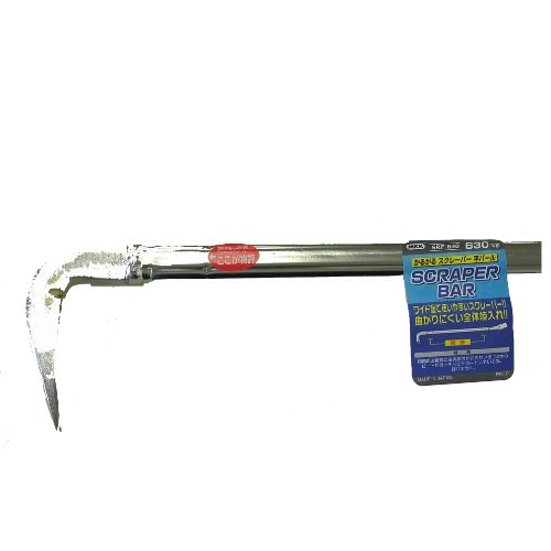 ●スクレーパーバールのスタンダード。●使いやすいバールです。●重量のあるドア、サッシ、ALC等の取り付け作業、腰板・床板解体作業、●Pタイル・クッションフロアー・古いペンキ等のはがし作業等に!●スクレーパーバールのスタンダード。●ワイド幅で使いやすいスクレーパーです。●全体焼入れパイプ使用で、ガッチリサポート!●パイプ部:パイプ形/クロームメッキ仕上●先端部:40mm●パイプ部:鉄(カーボン鋼)●両端部(鍛造):鉄(カーボン鋼)●縦115×横450×奥行25mm●500g●日本製