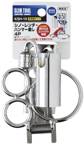 ●シノ・ハンマー等の携帯収納に便利な3リング付き。●パイプの先に溝があるから、差した工具がぐらつかない。●左右のスイング&折畳式なので、作業時に座っても邪魔になりません。●ベルトをしたままで、簡単に脱着ができます。●品番:KSH-10●用途:シノ・ハンマー等の携帯収納●全長:約120mm●幅:約117mm●奥行:約90mm●重量:約224g●折りたたんでコンパクト収納●スイング式●多用途タイプ●注意:ヒビ割れ等が生じた場合はただちに使用を中止してください。用途以外には使用しないでください。●本体:鉄(クロームメッキ)●製品サイズ:長さ120×高さ117×幅90、重量224g