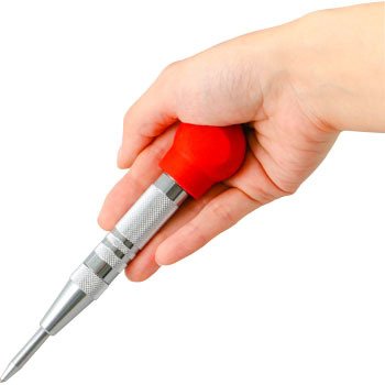 特長 / ハンマー不要!頭部を押さえるだけで正確な目打ちが出来ます。片手で打ち込めるので、真上の作業も簡単です。キャップの左右のネジリ具合で強弱の調整が出来ます。