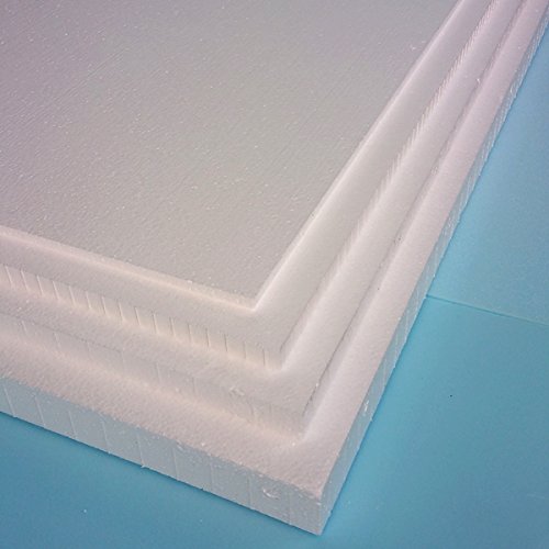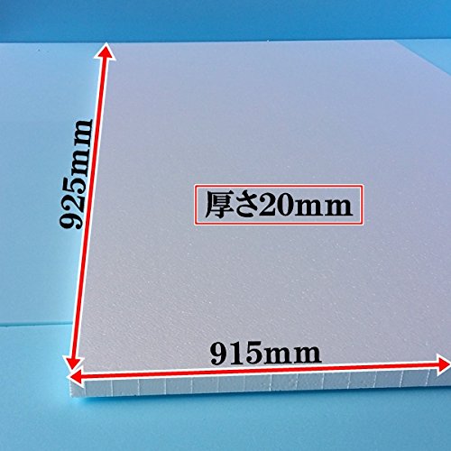 発泡スチロールでも中程度の硬さを持ち(中硬さ)普通硬さでは、柔らかすぎる場合に使用されています。発泡スチロール規定品925mm×915mm(3尺板)×厚さ20mm 5枚1セットを使用、建築関係の断熱材、造形品として多く使用されています。