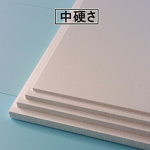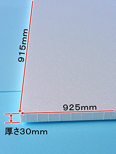 発泡スチロールでも中程度の硬さを持ち(中硬さ)普通硬さでは、柔らかすぎる場合に使用されています。発泡スチロール規定品925mm×915mm(3尺板)×厚さ30mm 4枚1セットを使用、建築関係の断熱材、造形品として多く使用されています。