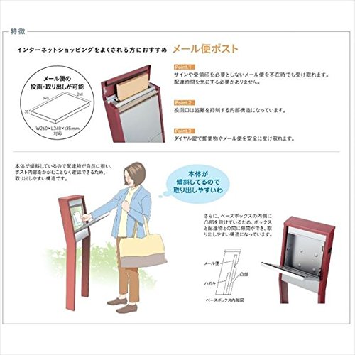 ●備考:郵便物を取り出した後は必ず蓋を閉めて施錠して下さい。郵便物が過度に多い場合や重量物の場合に取出口蓋が開いてしまう場合があります。