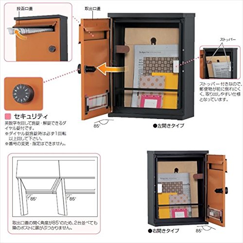 ユニソン 壁付けポスト アンテ 【郵便受け】 ブラック 左開きタイプ
