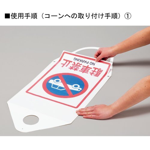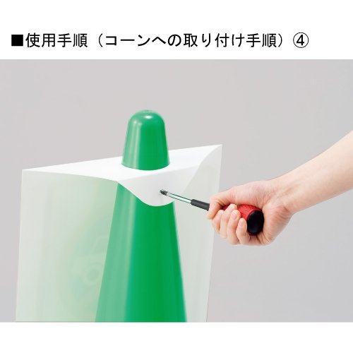 カラーコーンに取り付けて、オリジナルのペーパーを差し込んで展示する標識です。 カラーコピーやパソコンのプリント、オリジナルで製作した表示物を差し込んで取り付けるだけで簡単表示! 商品サイズ:855×340×2.16mm厚(折り曲げ前) 材質:ポリプロピレン 重量:400g 付属品:コーン固定ネジM4×10/1本 ※カラーコーン・ウエイトは別売です。