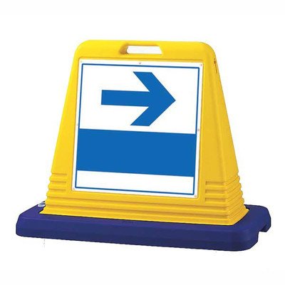 視認性を高め、街の景観にマッチしたデザインに大きな表示で安定感抜群の標識です。 【特長】 樹脂製なので人や車にやさしい安全設計です。 積み重ねて保管が出来る省スペース構造です。 表示内容:右矢印 メーカー品番:874-141 片面表示:裏面は本体と同一色です。 サイズ:403×835×650mm カラー:イエロー 材質:高密度ポリエチレン 重量:5kg(満水時:約11.4kg) 標識サイズ:445×445×1mm厚 標識材質:透明PET樹脂(穴上3中2下2)裏印刷、白PET樹脂(穴上3中2下2)表印刷 製造:ユニット株式会社