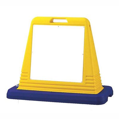 視認性を高め、街の景観にマッチしたデザインに大きな表示で安定感抜群の標識です。 【特長】 樹脂製なので人や車にやさしい安全設計です。 積み重ねて保管が出来る省スペース構造です。 表示内容:白無地 メーカー品番:874-152 両面表示 サイズ:403×835×650mm カラー:イエロー 材質:高密度ポリエチレン 重量:5kg(満水時:約11.4kg) 標識サイズ:445×445×1mm厚 標識材質:透明PET樹脂(穴上3中2下2)裏印刷、白PET樹脂(穴上3中2下2)表印刷 製造:ユニット株式会社