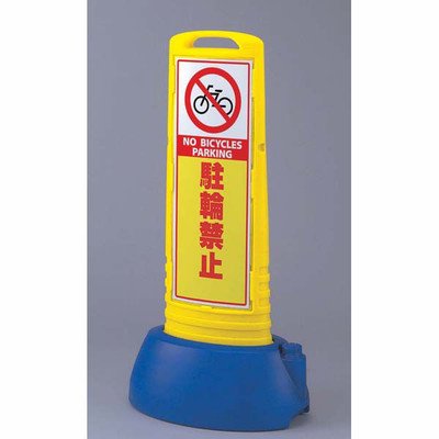 スリムタイプなので移動や収納に便利です。 【特長】 樹脂製なので万が一、人や車両が接触しても安心です。スリムなボディで移動、収納が楽にできます。置き場所の雰囲気で目立つイエローとシックなグレーとカラーが選べます。別売りのプラスチックチェーンで、連結すればバリケードにも。 表示内容:駐輪禁止 メーカー品番:865-622YE 両面表示 サイズ:338×505×1000mm(ウェイト付) カラー:本体/イエロー、ウェイト/ブルー 材質:高密度ポリエチレン 重量:4.8kg(満水時:約13.4kg) 標識サイズ:651×246×1.5mm厚 標識材質:透明PET樹脂裏印刷 製造:ユニット株式会社