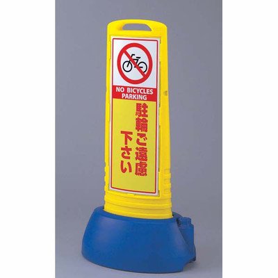 スリムタイプなので移動や収納に便利です。 【特長】 樹脂製なので万が一、人や車両が接触しても安心です。スリムなボディで移動、収納が楽にできます。置き場所の雰囲気で目立つイエローとシックなグレーとカラーが選べます。別売りのプラスチックチェーンで、連結すればバリケードにも。 表示内容:駐輪ご遠慮下さい メーカー品番:865-631YE 片面表示:裏面は本体と同一色です。 サイズ:338×505×1000mm(ウェイト付) カラー:本体/イエロー、ウェイト/ブルー 材質:高密度ポリエチレン 重量:4.8kg(満水時:約13.4kg) 標識サイズ:651×246×1.5mm厚 標識材質:透明PET樹脂裏印刷 製造:ユニット株式会社