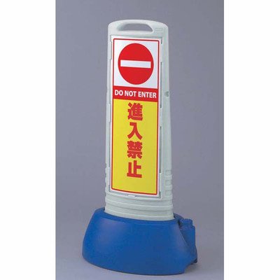 スリムタイプなので移動や収納に便利です。 【特長】 樹脂製なので万が一、人や車両が接触しても安心です。スリムなボディで移動、収納が楽にできます。置き場所の雰囲気で目立つイエローとシックなグレーとカラーが選べます。別売りのプラスチックチェーンで、連結すればバリケードにも。 表示内容:進入禁止 メーカー品番:865-641GY 片面表示:裏面は本体と同一色です。 サイズ:338×505×1000mm(ウェイト付) カラー:本体/グレー、ウェイト/ブルー 材質:高密度ポリエチレン 重量:4.8kg(満水時:約13.4kg) 標識サイズ:651×246×1.5mm厚 標識材質:透明PET樹脂裏印刷 製造:ユニット株式会社