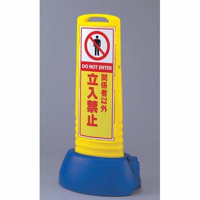 スリムタイプなので移動や収納に便利です。 【特長】 樹脂製なので万が一、人や車両が接触しても安心です。スリムなボディで移動、収納が楽にできます。置き場所の雰囲気で目立つイエローとシックなグレーとカラーが選べます。別売りのプラスチックチェーンで、連結すればバリケードにも。 表示内容:関係者以外立入禁止 メーカー品番:865-652YE 両面表示 サイズ:338×505×1000mm(ウェイト付) カラー:本体/イエロー、ウェイト/ブルー 材質:高密度ポリエチレン 重量:4.8kg(満水時:約13.4kg) 標識サイズ:651×246×1.5mm厚 標識材質:透明PET樹脂裏印刷 製造:ユニット株式会社