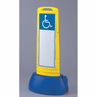 スリムタイプなので移動や収納に便利です。 【特長】 樹脂製なので万が一、人や車両が接触しても安心です。スリムなボディで移動、収納が楽にできます。置き場所の雰囲気で目立つイエローとシックなグレーとカラーが選べます。別売りのプラスチックチェーンで、連結すればバリケードにも。 表示内容:車いすマーク メーカー品番:865-672YE 両面表示 サイズ:338×505×1000mm(ウェイト付) カラー:本体/イエロー、ウェイト/ブルー 材質:高密度ポリエチレン 重量:4.8kg(満水時:約13.4kg) 標識サイズ:651×246×1.5mm厚 標識材質:透明PET樹脂裏印刷 製造:ユニット株式会社